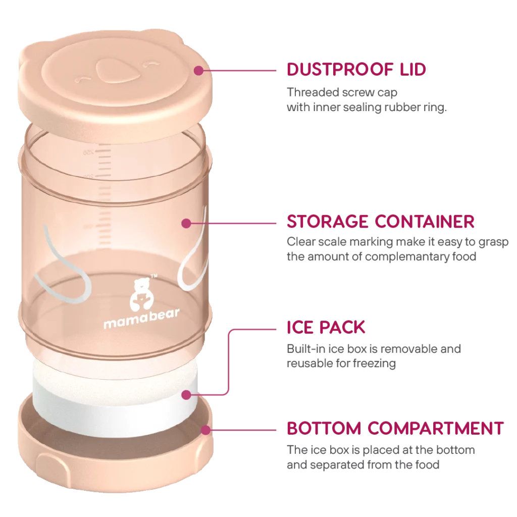 The storage container has clear scale markings, making it easy to measure the exact amount of food your baby needs. The built-in ice pack is both removable and reusable, ensuring that the food stays at the perfect temperature.